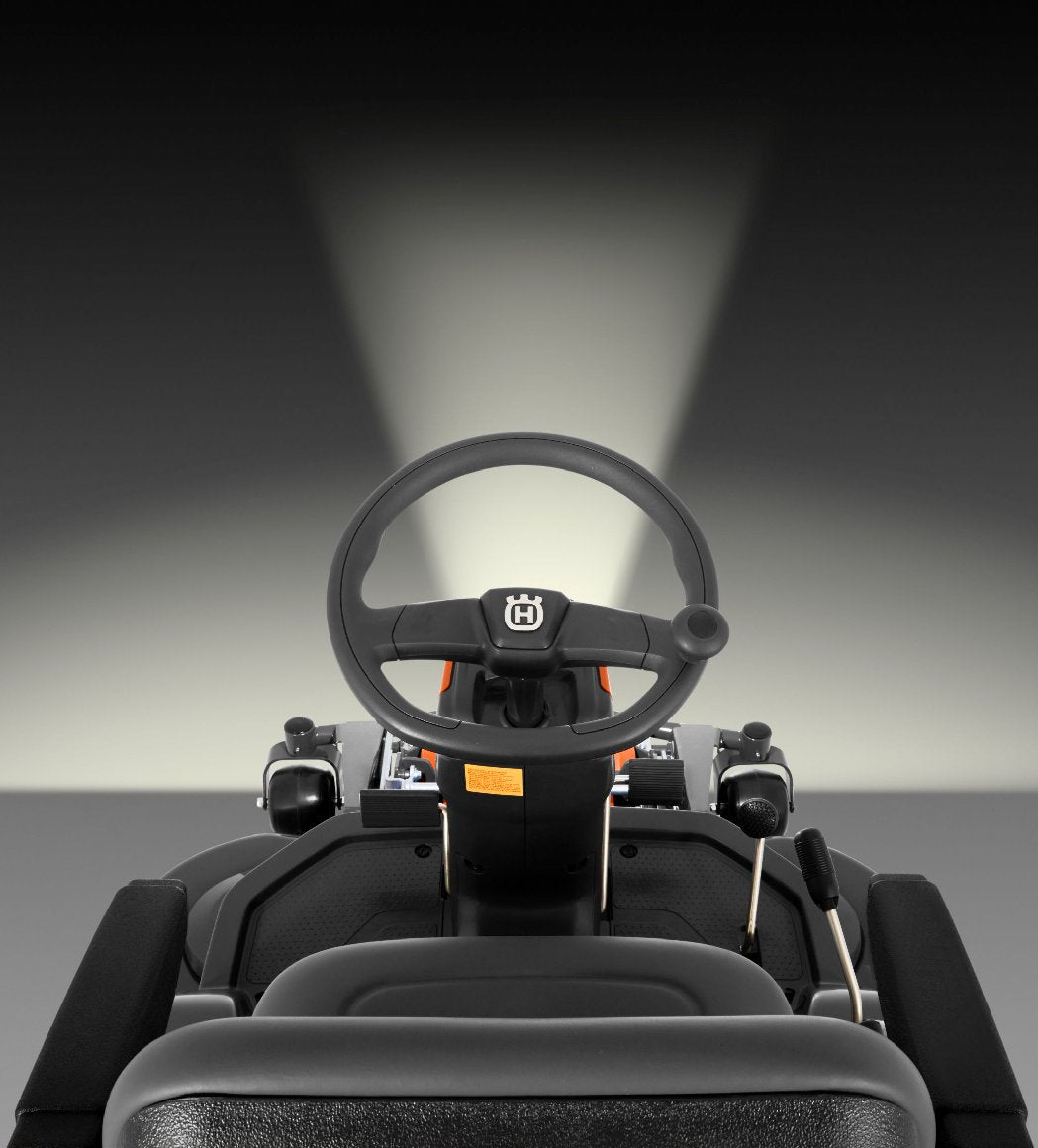 Das optionale Mähdeck (103 oder 122 cm) mit BioClip®- und Heckauswurffunktion ist werkzeuglos montierbar – dank Xchange-Kupplungssystem. Die Anbindung an Husqvarna Connect & Fleet Services via Bluetooth rundet den professionellen Auftritt ab.