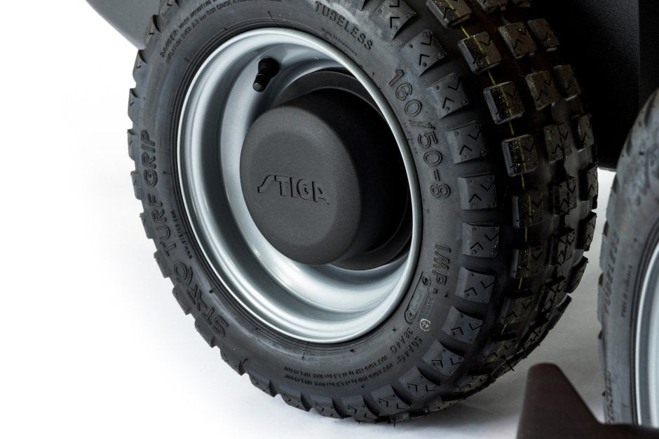 Reifen: 14,3″ x 5,60-8″ (vorne und hinten) mit Rasenprofil